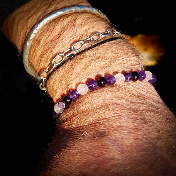 Elastic Gemstone Bracelet - Cherry Amber, Amethyst, Rose Quartz