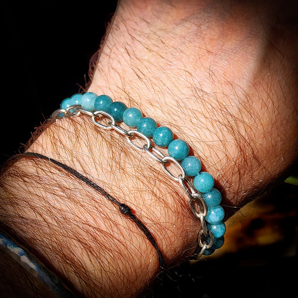 Description: Natural Aquamarine stone bead bracelet on elastic