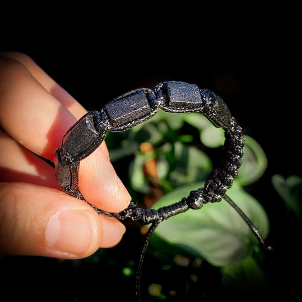 Natural Raw Black Tourmaline Cylinder Macramé Bracelet (10X9)