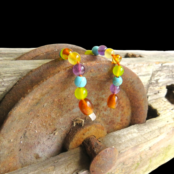 Amber Teething Bracelet / Anklet - Rainbow Mix - Mixed Gemstones & Honey Amber