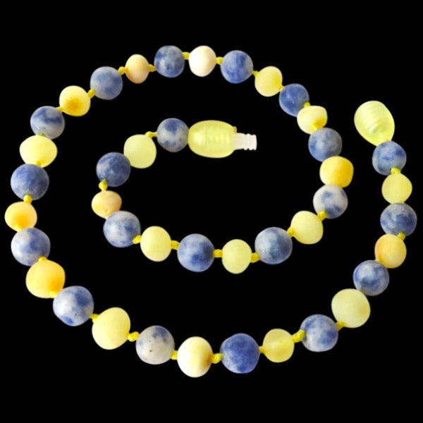 Amber Teething Necklace - Raw Butter & Blue Spot Jasper