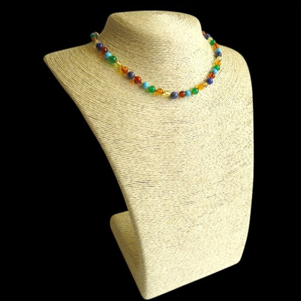 Amber Teething Necklace - Mixed Polished Amber, Jade, Turquoise, Lapis Lazuli