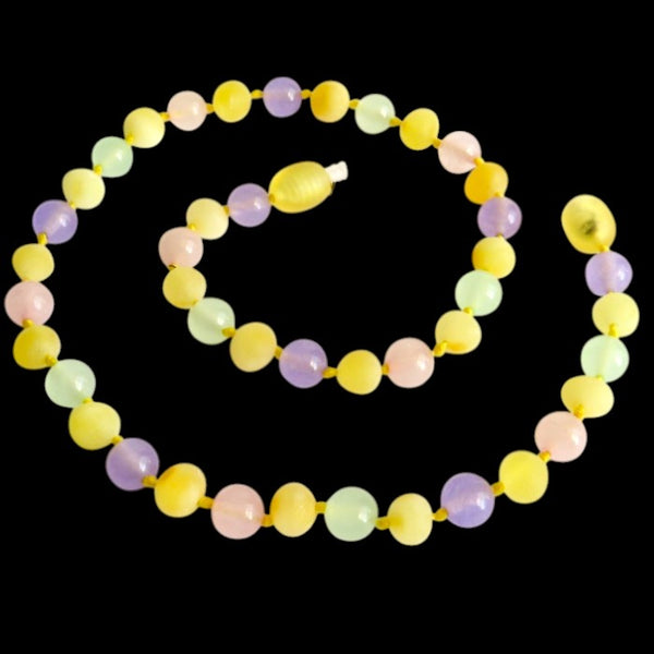 Amber Teething Necklace - Raw Butter & Pastel Chalcedony