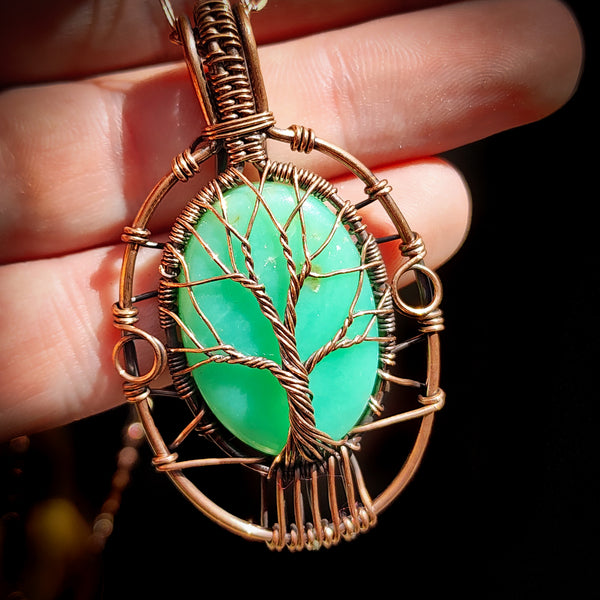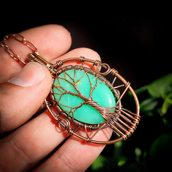 Handmade rustic copper wire wrap & Natural Chrysoprase stone Necklace