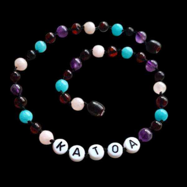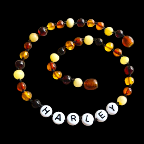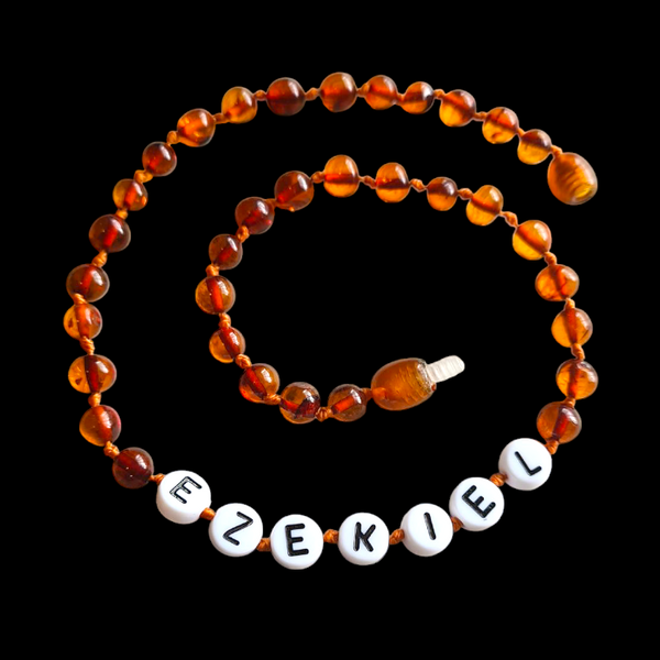 MADE TO ORDER - We can make these custom made Amber necklaces with any name you like, in any design/color you like: