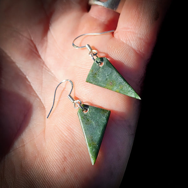 Description: Natural New Zealand Greenstone Pounamu carved earrings