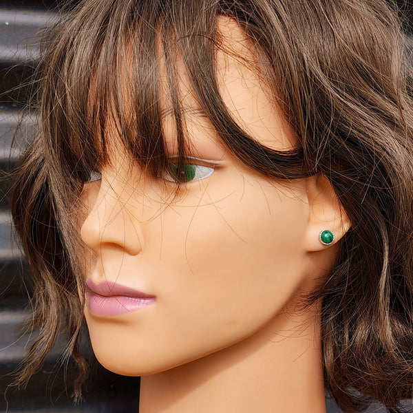 Description: Genuine solid 925 sterling silver & natural Malachite, round stud earrings
