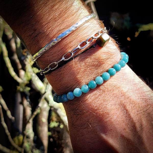 Description: Natural Aquamarine stone bead bracelet on elastic