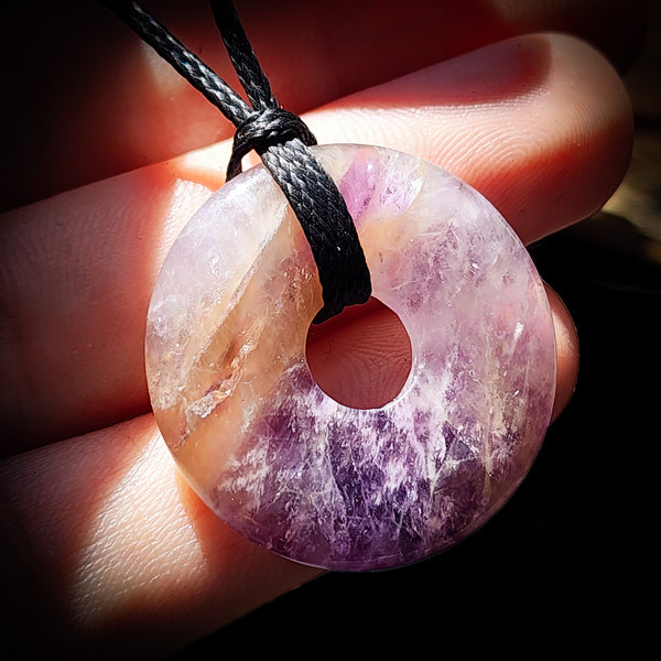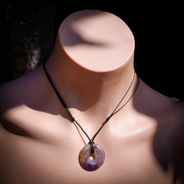 30mm Natural Amethyst Donut Pendant Necklace