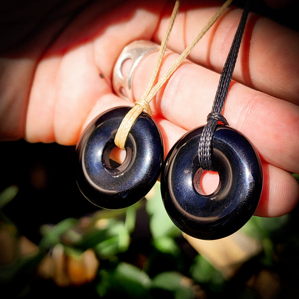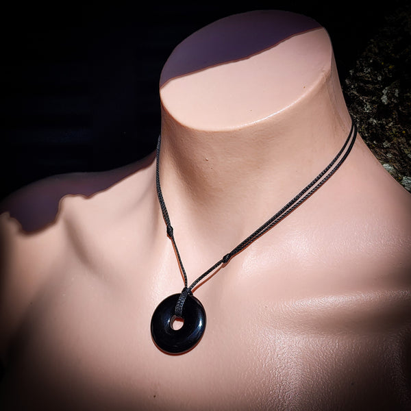 Natural Obsidian Donut Pendant Necklace