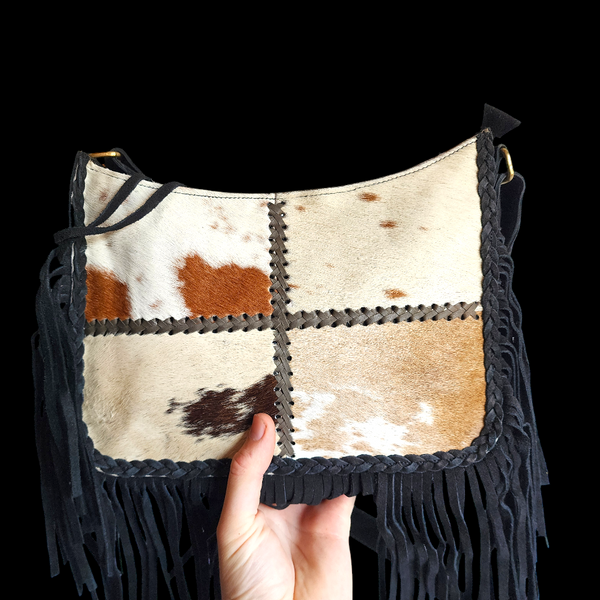 Genuine Leather & Cow Hair Tote Bag - Black & Patchwork Cow Hair