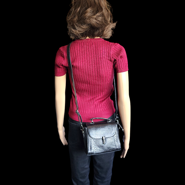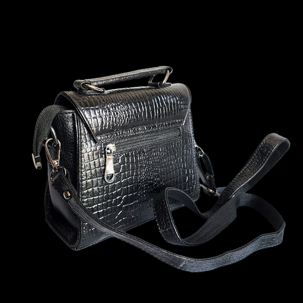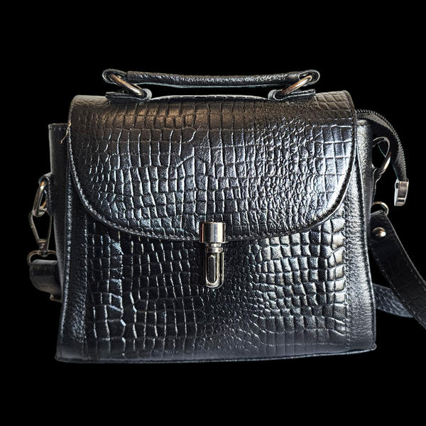 Genuine Leather Clutch Handbag - Black Crocodile
