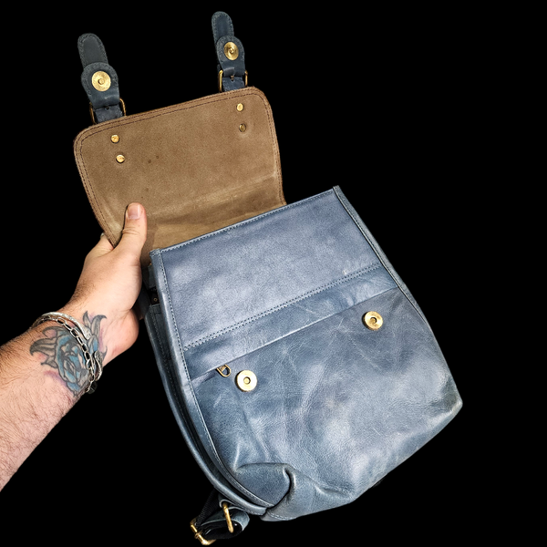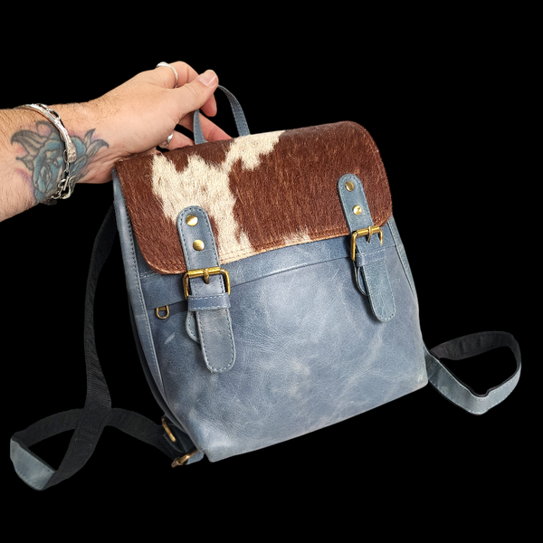 Genuine Leather & Cow Hair Back Pack - Blue & Hair