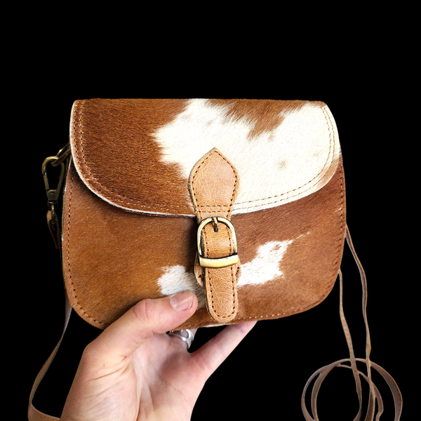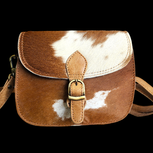 Genuine Leather & Cow Hair Hand Bag - Tan