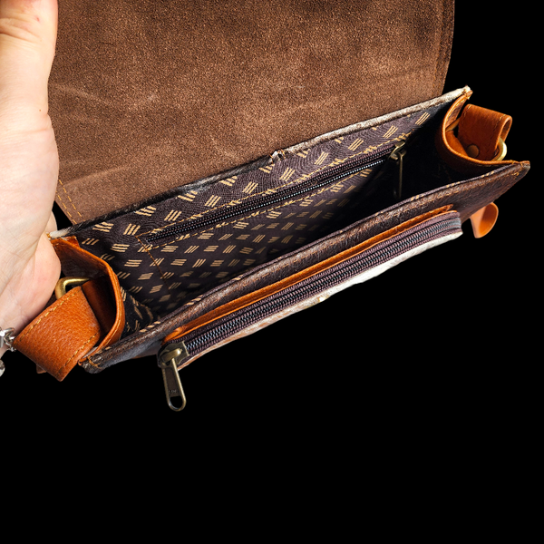 Description: Natural REAL leather & cow hair handbag, main pocket, front pocket & back pocket & inside zip pocket