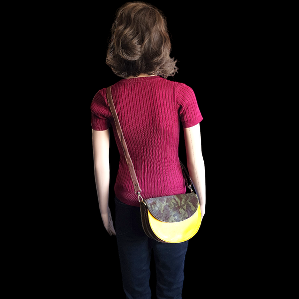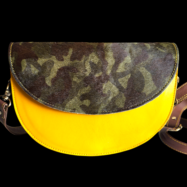 Genuine Leather & Cow Hair Hand Bag - Yellow Camo Patchwork