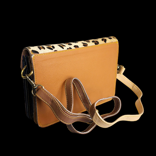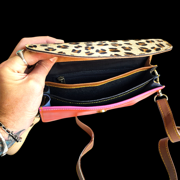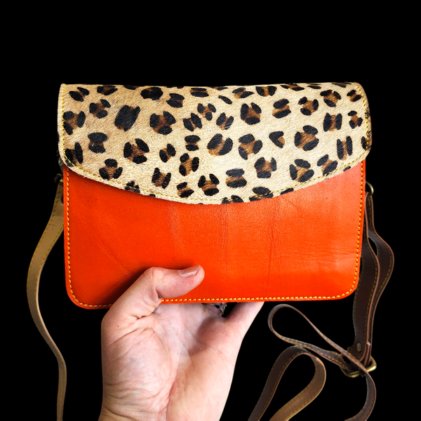Genuine Leather & Cow Hair Shoulder Bag - Orange Patchwork