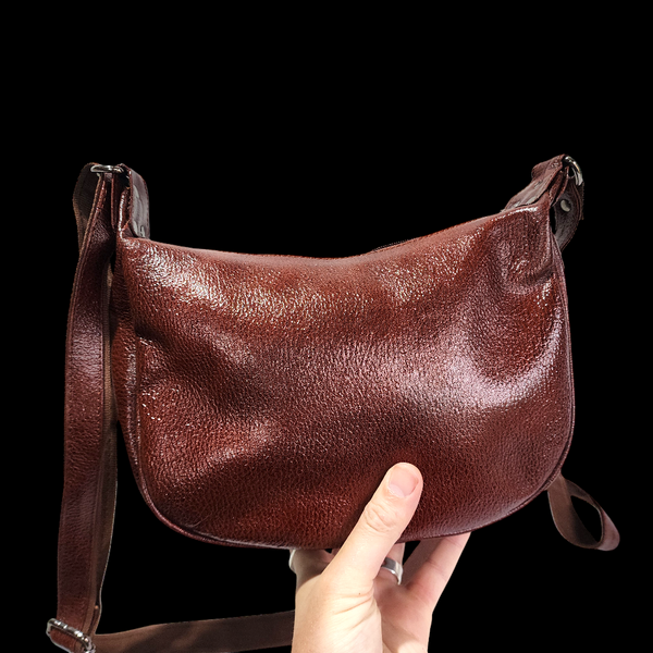 Description: REAL leather handbag with back zip pocket, main pocket & inside zip pocket