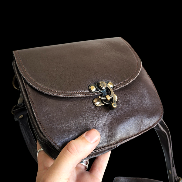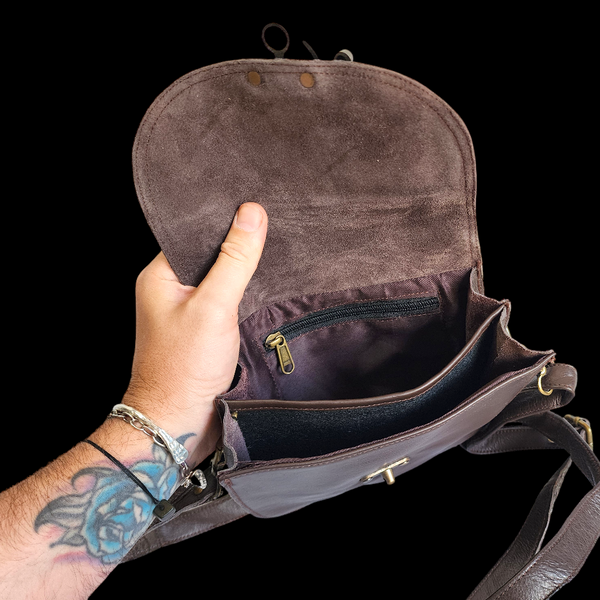 Description: REAL leather handbag with 2x main pockets + inside zip pocket