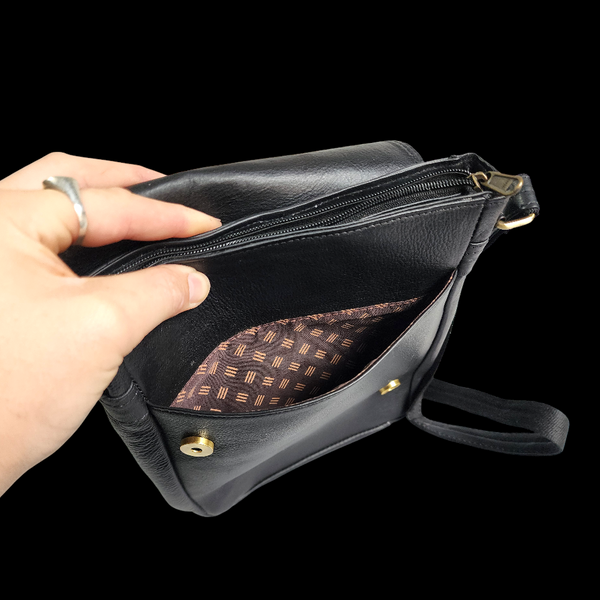 Genuine Leather Shoulder Bag - Black