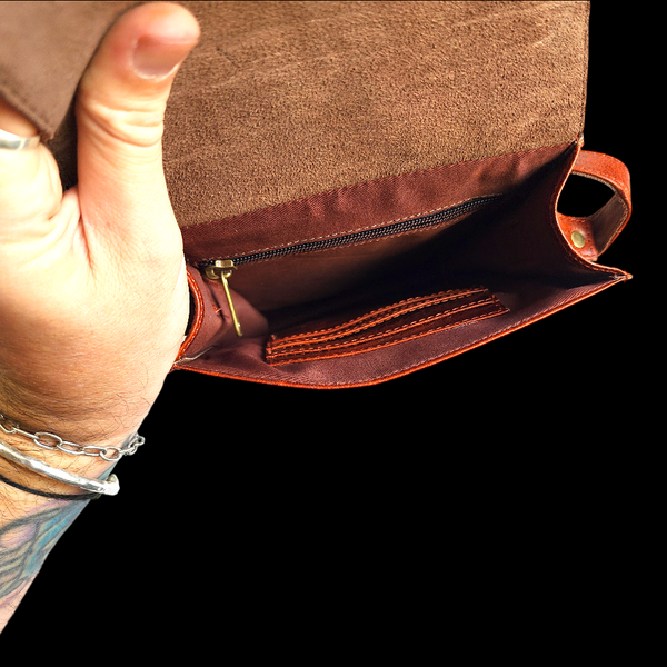 Description: REAL leather shoulder bag with back zip pocket, front zip pocket, main pocket, inside zip pocket and inside card holder