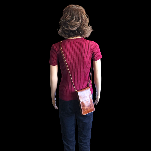 Genuine Leather Vertical Gypsy Shoulder Bag - Vintage Brown