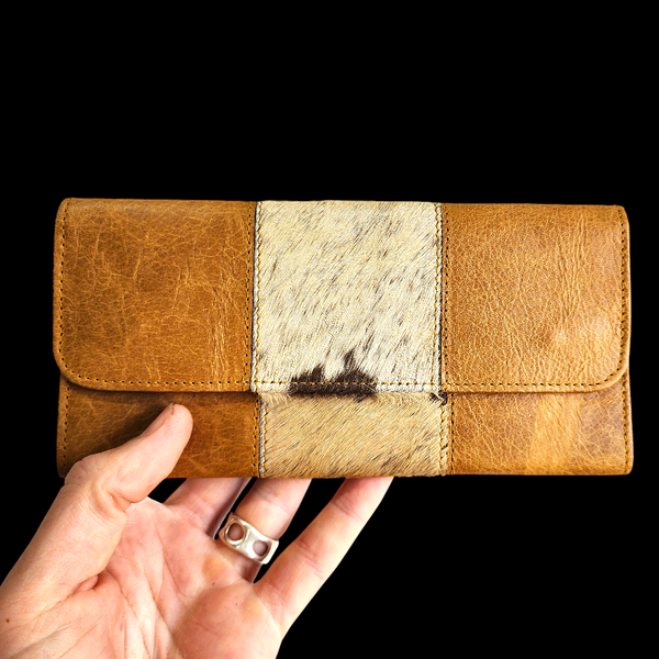 Genuine Leather & Cow Hair Purse - Tan