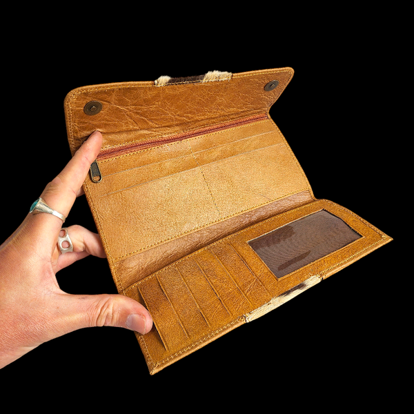 Description: REAL leather & cow hair purse with multiple pockets / card holders & zip coin pocket