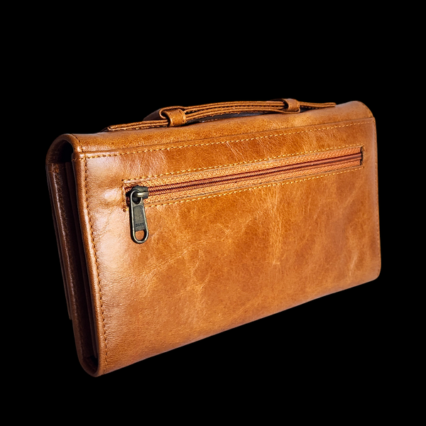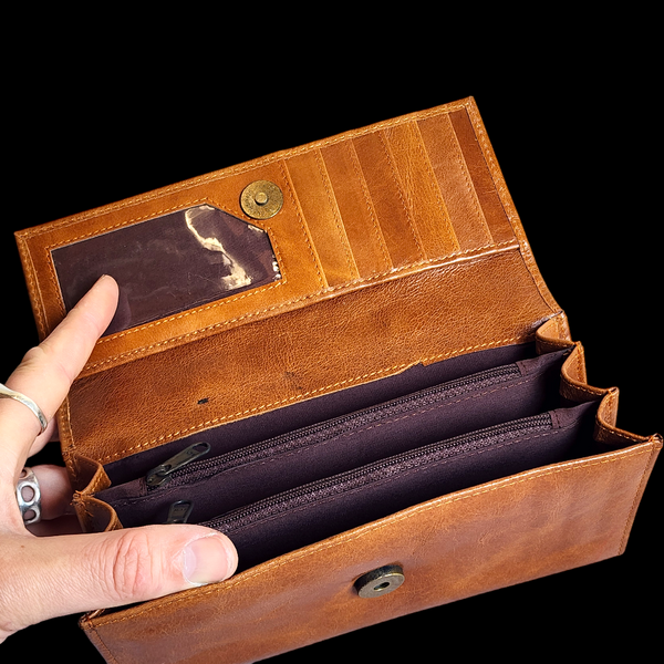 Description: REAL leather clutch purse - Multiple compartments & 3x zip pockets