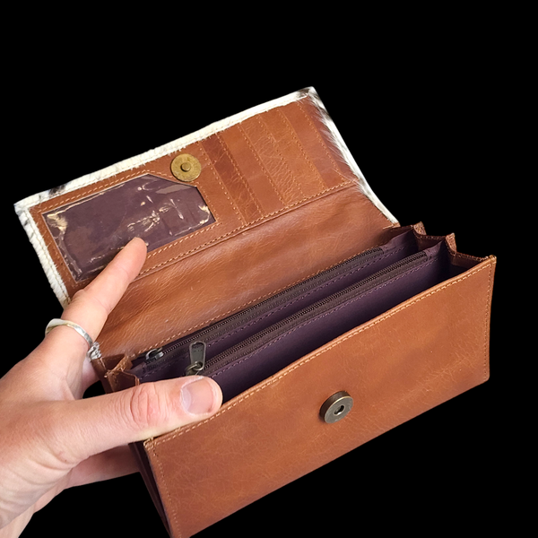 Genuine Leather & Cow Hair Clutch Purse - Brown