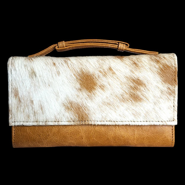 Genuine Leather & Cow Hair Clutch Purse - Tan