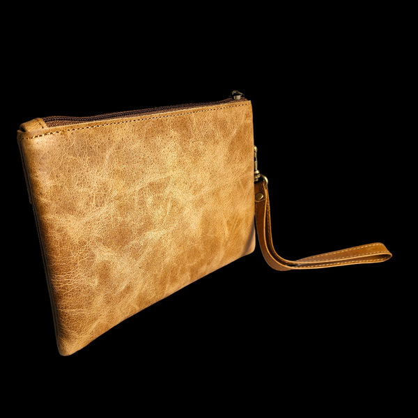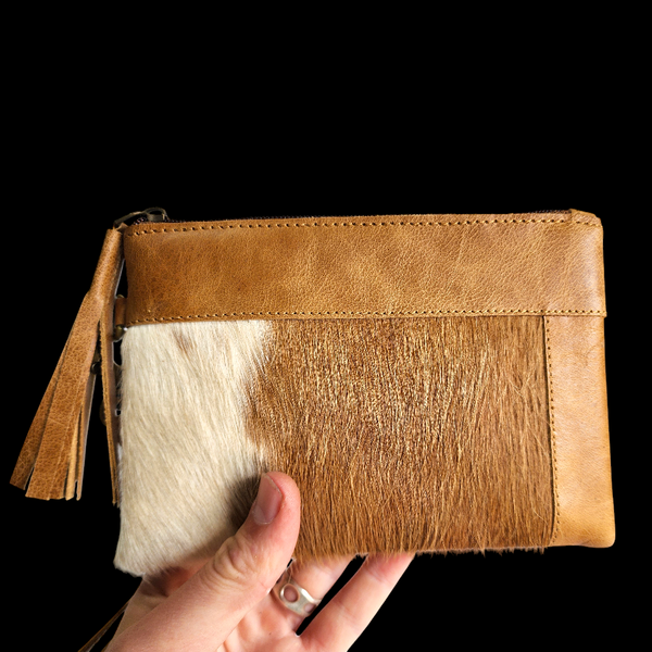 Genuine Leather & Cow Hair Clutch Purse - Tan