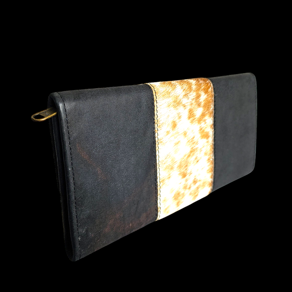 Description: REAL leather & cow hair purse with multiple pockets & coin zip pocket