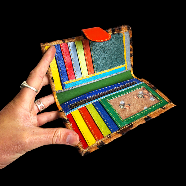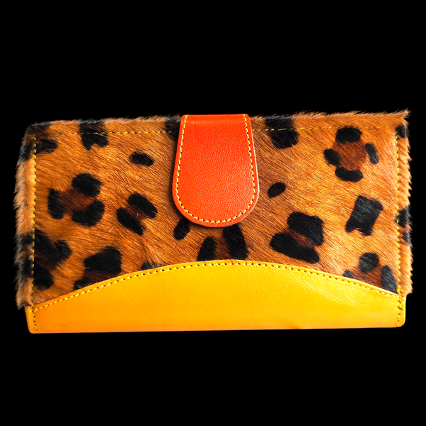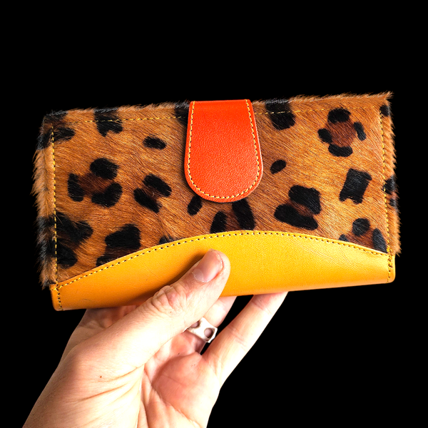 Genuine Leather & Cow Hair Purse - Patchwork Leopard