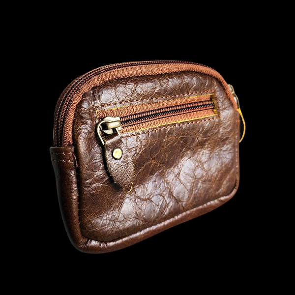 Description: REAL leather & cow hair zip coin purse / wallet with back zip pocket and main zip pocket