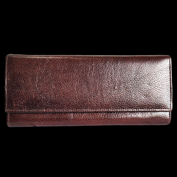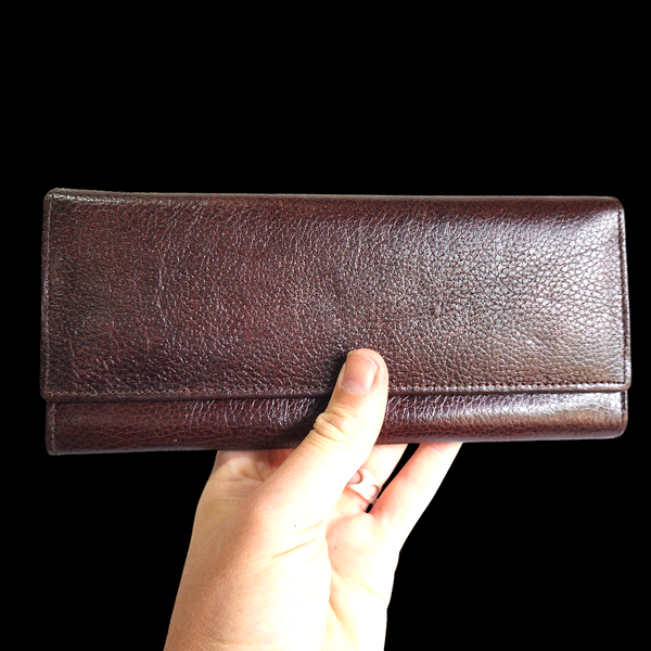 Description: REAL leather purse with multiple compartments, card holders & zip pockets