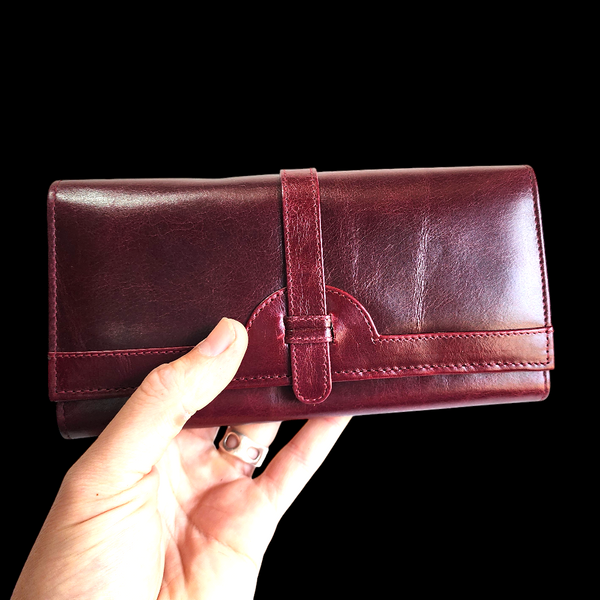 Description: REAL leather purse with multiple compartments, card holders & zip coin pocket