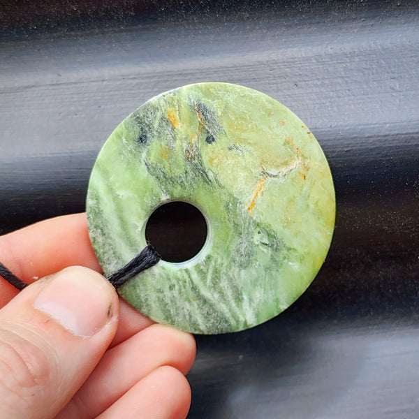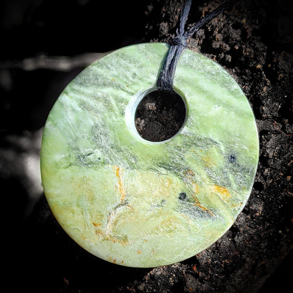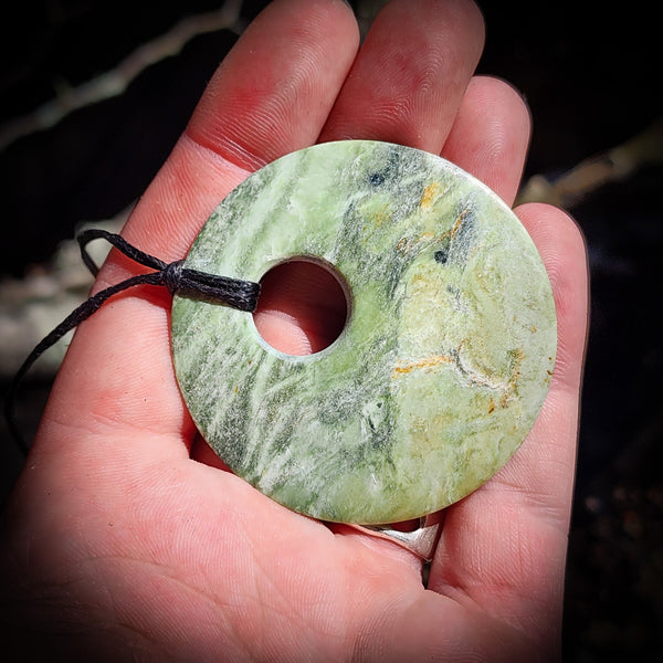 NZ Greenstone Pounamu Disk Pendant Necklace (N415)