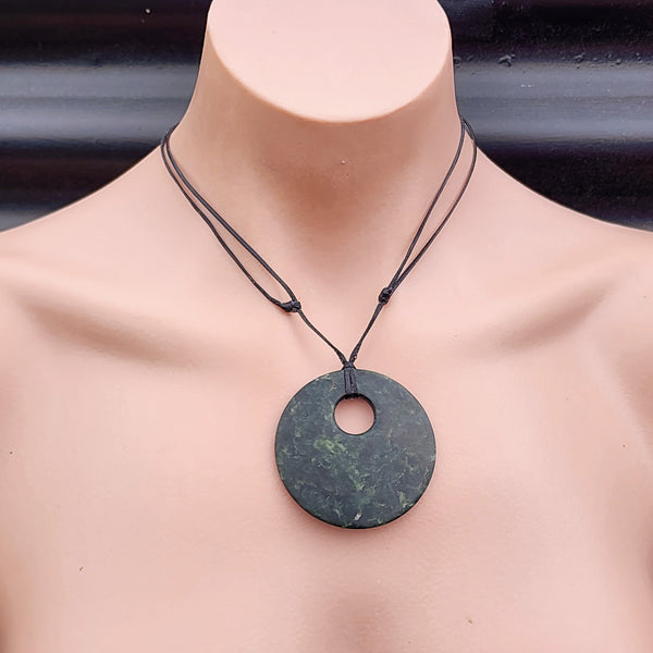 NZ Greenstone Pounamu Disk Pendant Necklace (N419)