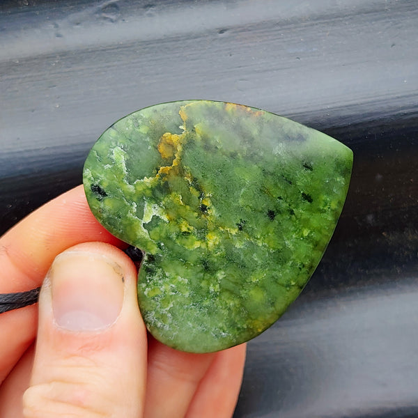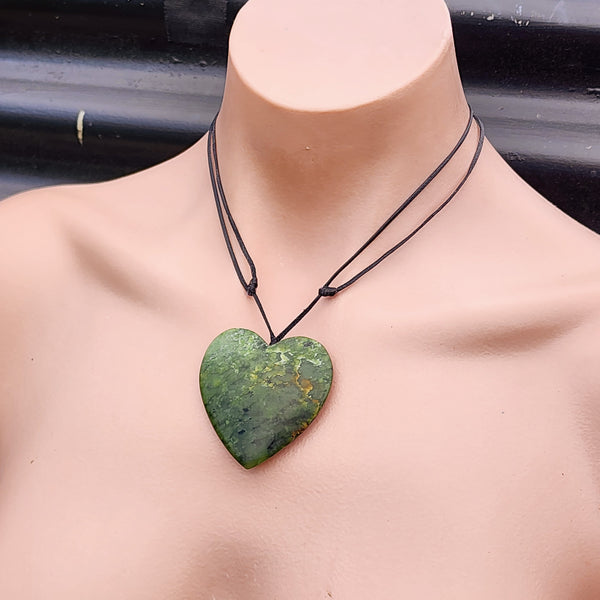 NZ Greenstone Pounamu Heart Pendant Necklace (N425).