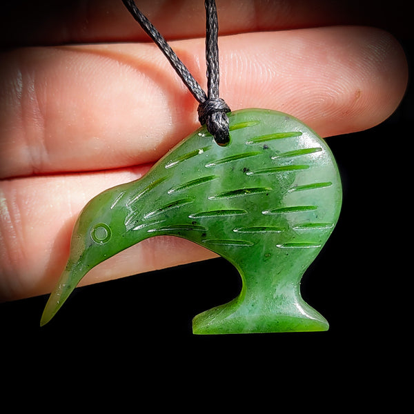 Description: Natural NZ Greenstone / Pounamu carved Kiwi pendant necklace