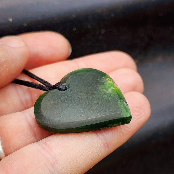 NZ Greenstone Pounamu Marsden Flower Heart Pendant Necklace (N474)