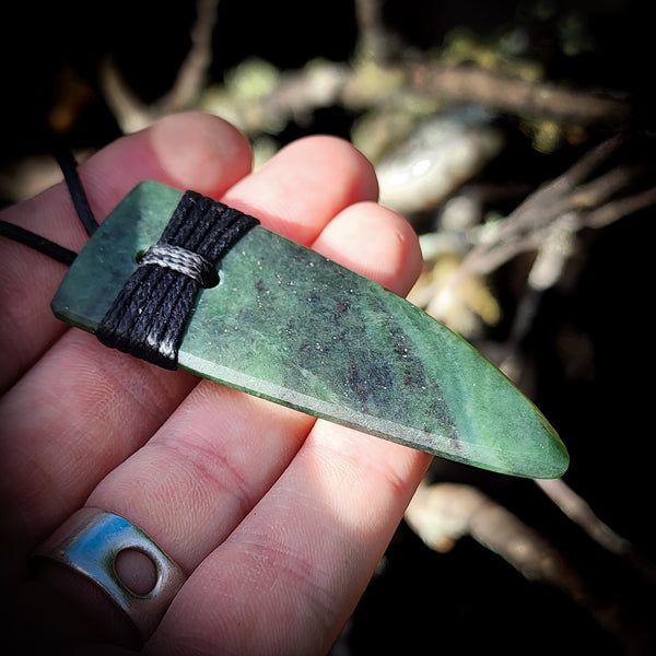 NZ Greenstone Pounamu Niho Tooth Pendant Necklace (N703)