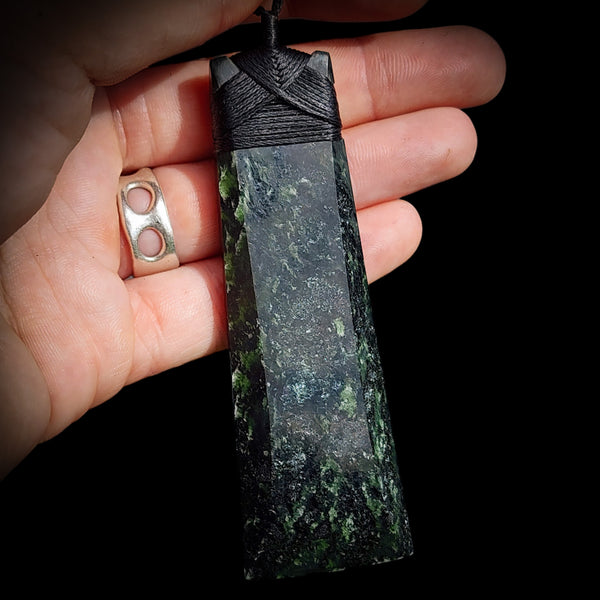 Description: Natural NZ Greenstone / Pounamu carved Toki pendant necklace