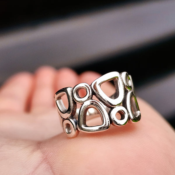 Description: Stunning 100% solid 925 sterling silver chunky multi shaped ring