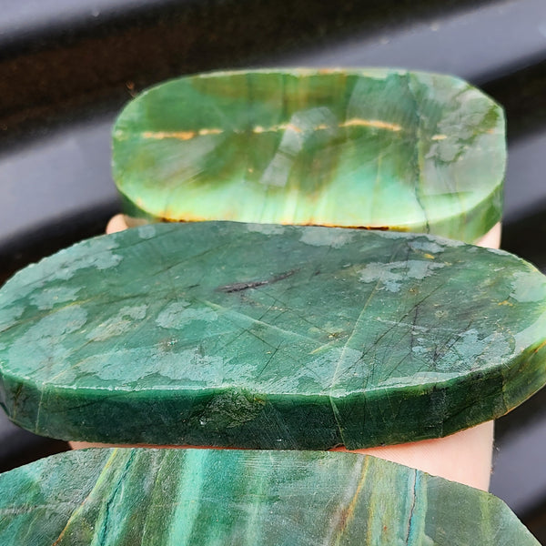 Description: Natural Nephrite Jade carving slices - all stones are translucent & hold an excellent polish; perfect for carving
