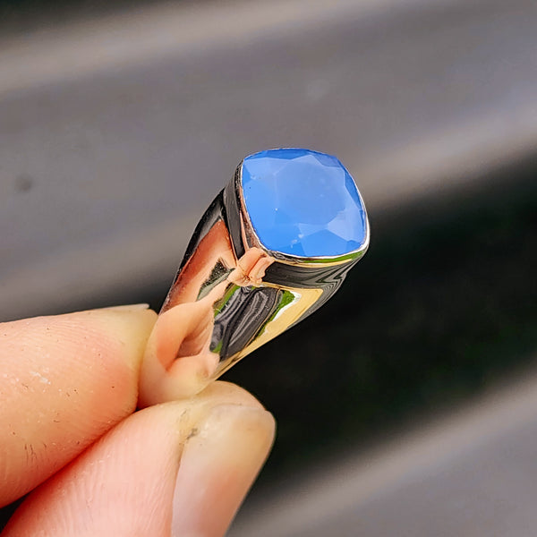 Description: Genuine solid 925 sterling silver & natural Chalcedony handmade diamond cut ring