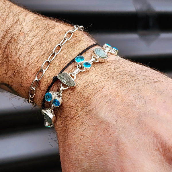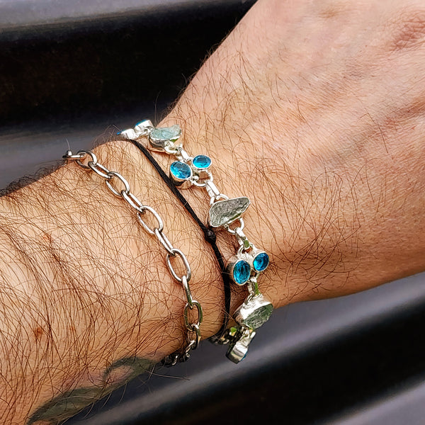 Description: Genuine solid 925 sterling silver & natural Aquamarine with blue Topaz rustic handmade chain bracelet