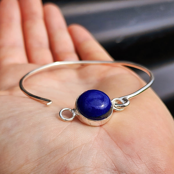 Solid 925 Sterling Silver & Natural Lapis Lazuli Cuff Bracelet