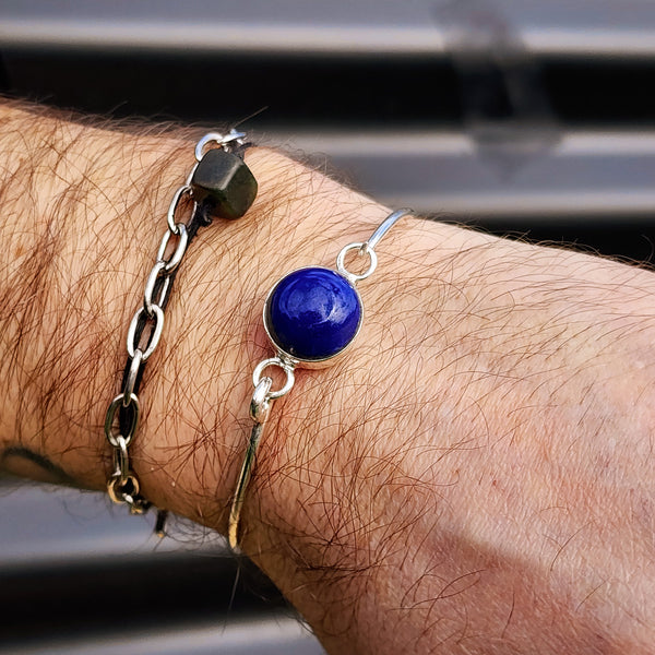 Description: Genuine solid 925 sterling silver & natural Lapis Lazuli handmade cuff bracelet